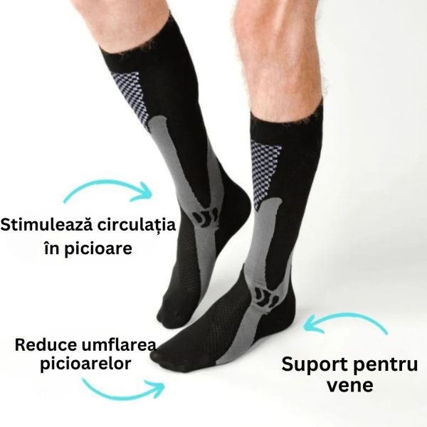 Aceste șosete ajută la îmbunătățirea fluxului sanguin, ceea ce înseamnă mai puțină oboseală și mai multă energie pentru ziua ta. Perfecte pentru ore lungi în picioare sau activitate fizică intensă.